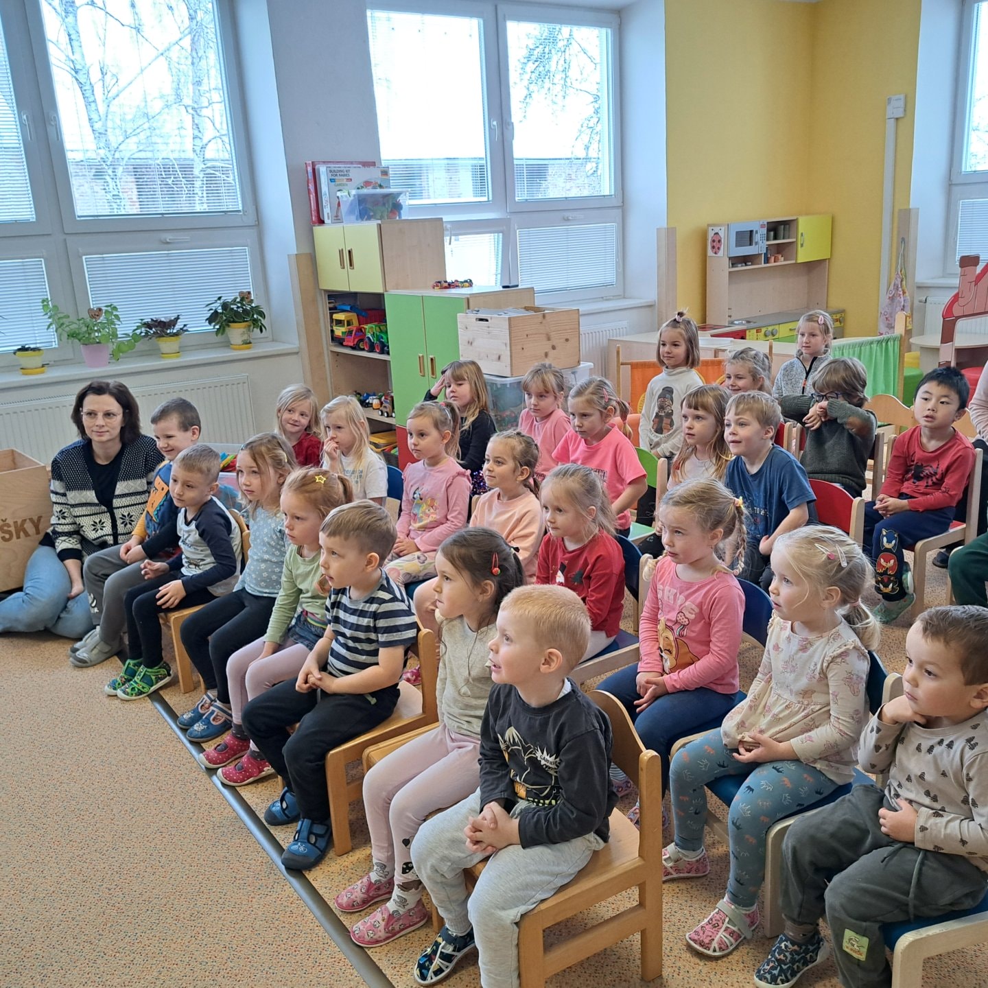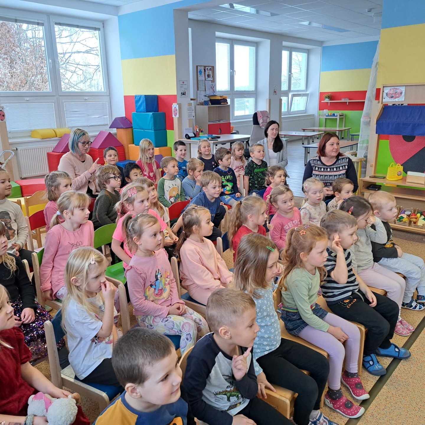 Ve středu 26.11. 2025 do mateřské školky přijelo Divadýlko u dvou sluncí s příběhem - A že by ježek v zimě spal? Děti se dozvěděly zajímavé věci o zvířátkách a s nadšením si zazpívaly. Představení se všem moc líbilo a budeme se těšit na další setkání.
