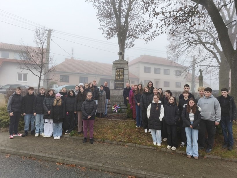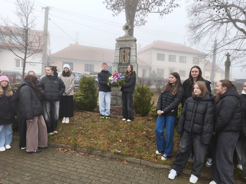 Za typicky podzimního počasí dne 13. 11. ředitel základní školy Mgr. Milan Malý, zástupce ředitele Mgr. Marcela Hořínková, starostka obce Mgr. Lenka Štěpánková, místostarosta obce Ing. Jiří Tuček a žáci 9. ročníku společně uskutečnili připomínkové setkání k příležitosti Dne boje za svobodu a demokracii a Mezinárodního dne studentstva. Na počest tohoto významného dne se položil věnec k pomníku padlých na návsi. Pan ředitel v krátkém proslovu připomněl události tohoto významného data, které jsou již tak vzdálené dnešní mladé generaci, ale jsou v dnešní době tak aktuální. K tomuto datu se vážou hned dvě události, které od sebe dělí 50 let. První je z roku 1939, kdy byly nacisty uzavřeny vysoké školy. O 50 let později – tedy v roce 1989 – zase proběhly studentské protesty na Národní třídě, které vedly k pádu komunistického režimu. Paní starostka řekla všem žákům, aby si vážili svobody, kterou mají a aby se snažili neprosazovat svou svobodu na úkor někoho jiného. Zároveň všem popřála hodně úspěchů v nadcházejícím nelehkém čase, kdy se žáci budou hlásit na střední školy.